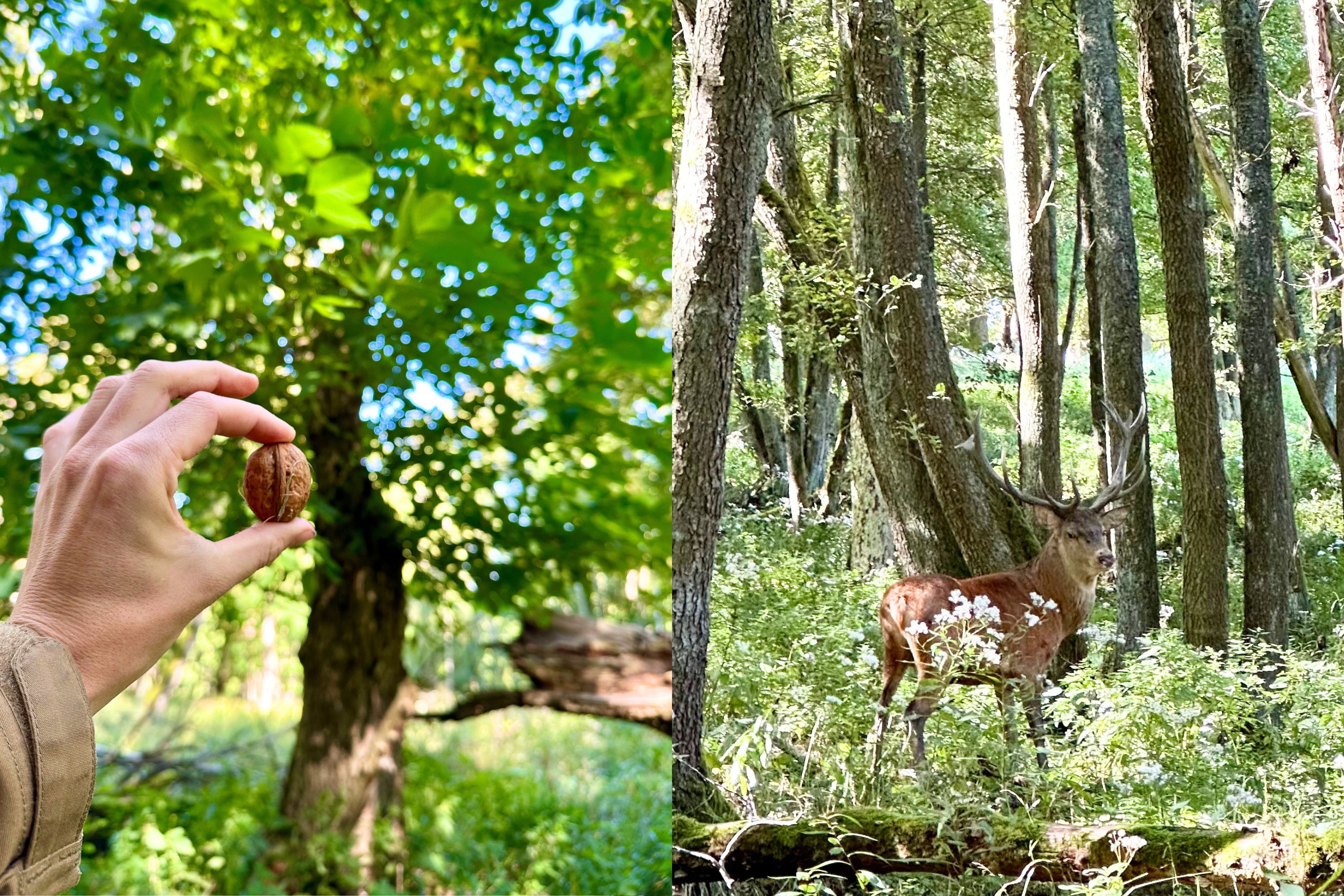 Pokorně křižuji hájem po bahnitých stezkách, prodírám se kopřivami, a ztrácím se naplno v přítomnosti. Lesní ticho umocňuje vítr. Okem narážím na povědomě rezavou hromadu vyčnívající z trávy mezi stromy. Beru dalekohled a nestačím se divit, vidím paroh. To bude mršina, chudák jelen, proletí mi hlavou. Období říje. Musím to samozřejmě prozkoumat. Šoulám se pěkně potichoučku, vítr hrál se mnou. Jsem blízko, na dostřel telefonu, dobrých deset metrů. Hromada se pohla. Tak je živej! Mám smíšené pocity. Co bude teď? Jelen se zvedá, já schovávám mobil a srážíme se pohledem. Stojíme naproti sobě, oba čekáme, co se bude dít. Majestátní čtrnácterák. Cítím jeho dech, vůni, důvěru a klid — strach je ten tam. Jelen v klidu poodstoupí, pak se znovu otáčí, jakoby mě zdravil, a poklidným poklusem mizí mezi stromy.